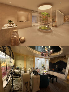 The space emphasizes a natural, tranquil, and rustic atmosphere, providing customers with a healing space for physical and mental relaxation. In terms of spatial layout, an open layout is adopted to reduce partitions and enhance the fluidity and transparency of the space.
