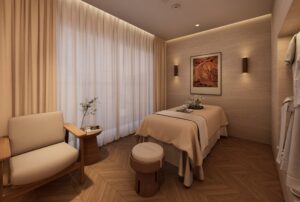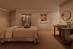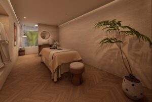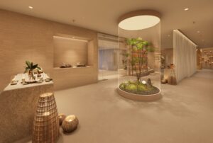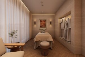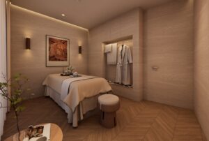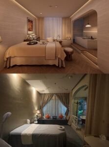 The Furong Classic SPA Space Project is located in Guangzhou, and the plan is a personalized commercial space design inspired by the aesthetic concept of “nature and health” that has been passed down from Furong Classic to this day. The indoor area of the space is 400 square meters, designed to create a serene healing space that returns to the essence of nature. Abandoning complex carvings, the “beauty of imperfection” is interpreted through the primitive texture and warm touch of natural cave stones – the wall cave stone material is laid out with a matte texture and soft color tone to create a spatial tone, and its natural holes and subtle cracks become poetic footnotes of time, giving the space a simple and profound sense of breathing. The spatial layout is based on the principle of open flow, combined with soft natural light and warm diffuse lighting, creating a hazy and quiet light and shadow layer.