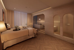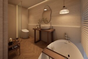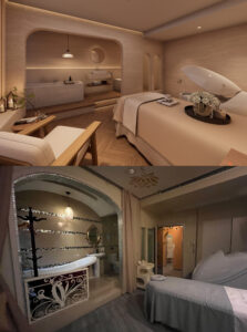 The durability and ease of maintenance of cave stones also provide a balance between practicality and aesthetics to the space, ultimately presenting a high-end SPA venue that combines wabi sabi spirit with modern functionality.
