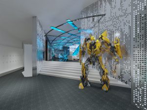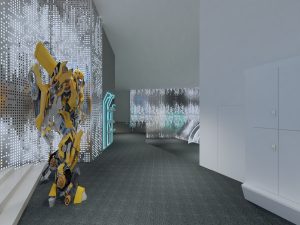 The designer used silver stainless steel walls combined with panoramic projections to create the facade design, which goes beyond the imagination of rigid design and extends the space infinitely. Provide customers with a unique experiential atmosphere.
