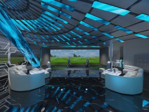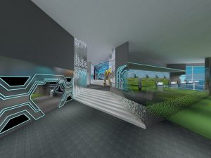 The designer’s ingenuity is combined with the personal preferences of the golf venue manager. The “Bumblebee” art installation in the corridor area emphasizes the sense of technology in the space and increases the viewing and fun of the public activity area.