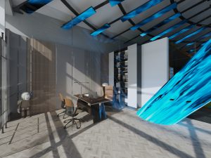 In the design process, the key focus of this case is to integrate commercial attributes to regenerate, reproduce, and repair the original space. In terms of color, gray is used as the main tone, with business blue accents, and technology as the theme to create a spatial tension of strength and brightness. The circular design perfectly integrates the overall space, making it highly dynamic.
