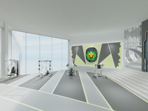 The plan abandons the complex image stacking wall design and uses corporate green with black, white, and gray, which not only showcases exquisite technological texture, but also brings people’s sensory focus back to fitness itself. At the same time, the indoor floor to ceiling glass windows can fully allow outdoor light to flow into the interior, echoing the mirrored walls and creating a space derivative. The division of ground lines is based on maintaining spatial zoning and diverting pedestrian routes.