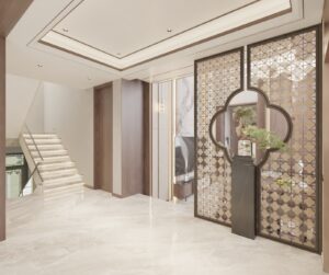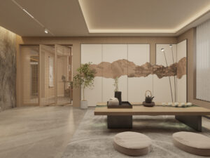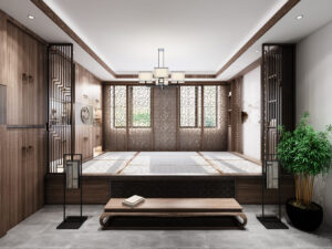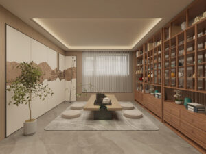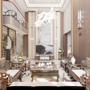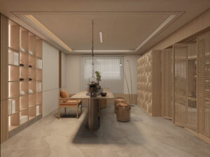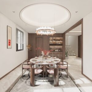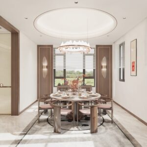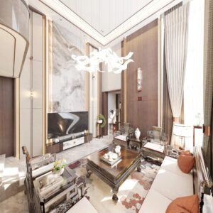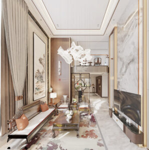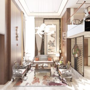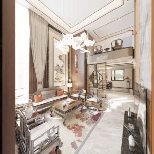 The overall design centers on the cohesive concept of “harmonizing diverse elements,” cultivating a distinctly Chinese aesthetic sensibility and character. By emphasizing the articulation of details as a means of ornamentation, the space achieves a personalized charm that balances rustic simplicity with refined grandeur in residential environments.