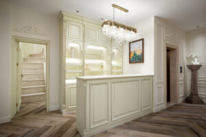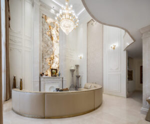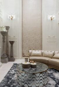 入户设计推崇高贵、优雅与浪漫,演绎着王子与公主的浪漫唯美爱情故事。朦胧的灯光设计、高档的家具装饰以及复古的装饰特点,处处散发出高贵的气质、古典的气息、优雅的品味。